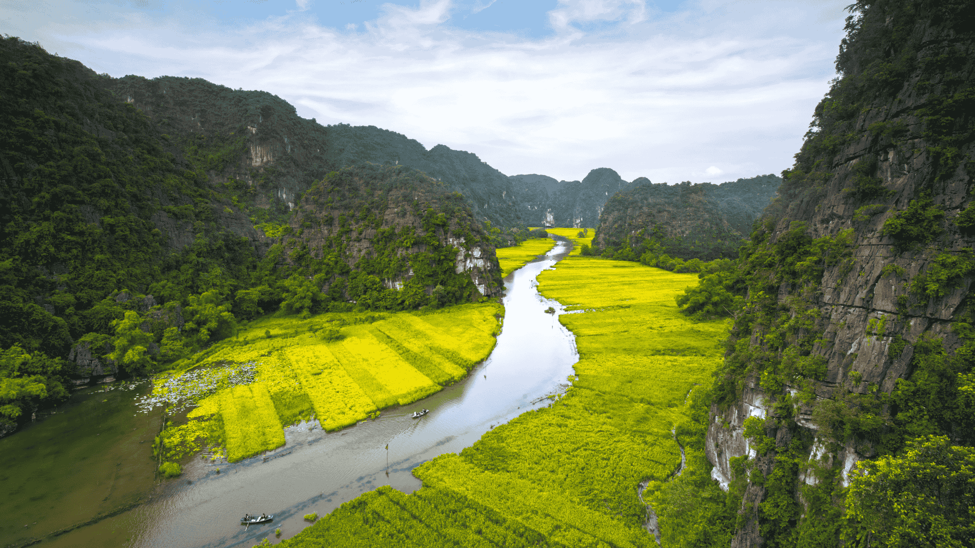 離開海岸線,來到陸龍灣,小河蜿蜒穿過群山與田園,石灰岩奇峰倒映水面,沿途景色綺麗,媲美「陸上下龍灣」。繼續走進長安生態保護區,乘小舟穿越洞穴與河道,光影在岩壁間流動,又似進入一座露天的地質博物館。